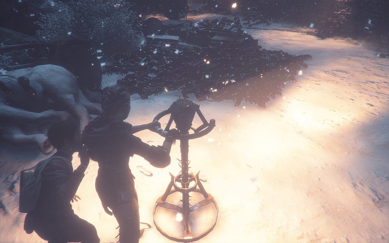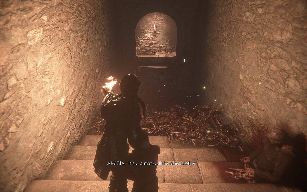 On the other hand, much of what there is to love about A Plague Tale: Innocence is not so cerebral. The game is macabre, gruesomely gorgeous, and genuinely terrifying. The way that the rats swarm, flow, and engulf strikes a primal chord. There was one point in the game where I came across a corpse half bathed in light, with the bottom half engulfed in a wave of rats. As I moved the light closer and the rats scurried away, they exposed a bloody skeleton beneath. It was genuinely sickening to see the area where light goes to shadow transition from flesh to bone. It’s just one small example of a game that is so steeped in horror that even a soulless veteran like myself had moments of genuine glorious disgust and revulsion.