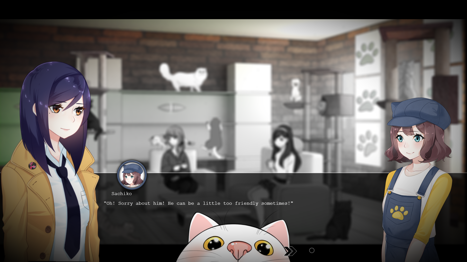 The various neighborhoods and districts you explore in Tokyo Dark -Remembrance- all felt unique and reflected the real places very well (not that I’ve ever been to Tokyo, I just played a lot of Yakuza, and you should too). The areas were generally small, with one main street and three or four buildings you could enter and talk to the people inside. Not much to interact with outside of the people in these zones, but all the same, they looked great. And the music was phenomenal too (with one single exception, a cat cafe with a song full of meows). Each zone had its own unique soundtrack, ranging from Deus Ex style techno music to spooky ambient tones.