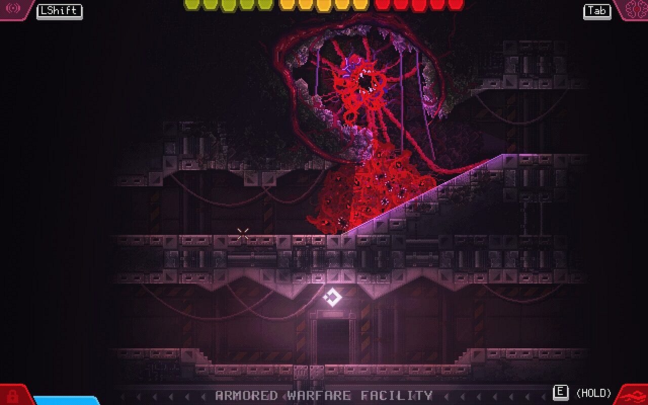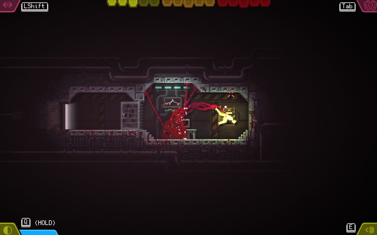 I found that this style of exploration was not all too interesting for me. Mostly because I was prone to getting lost. Carrion relies on your own memory of the areas, and there is no minimap. Returning the same zones over and over was not all too uncommon, and there was at least once where I considered restarting over how frustrated I was without a map. Of course, when I could easily figure out the direction I was supposed to be going, the game was a lot more fun.