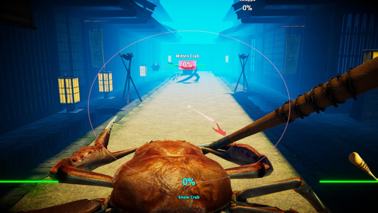 Likewise, changing crabs had minimal difference as well. There are a ton of crustaceans available to you, from the humble snow crab to the monstrous king crab, plus the occasional lobster or mantis shrimp. Supposedly they all had different strengths, marked by a Jojo’s Bizarre Adventure style stat wheel. But again, these proved to matter very little in the heat of crab battle, and I ended up choosing by aesthetic preference and whatever crab had the longest arms.