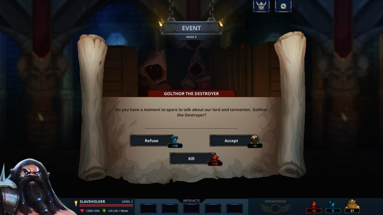 It’s all very silly. In the first set of dungeons, you’re working for a large centaur. He is the last line of defense if the adventurers push through your monsters and traps. He has a giant health pool, and his stats can be upped via random events on your week by week work schedule, or through rewards from completing dungeons. The farther you get through the game. the more options become available for different dungeon masters. In my time with the game I saw a dryad-like forest enchantress, and a machine focused engineer as choices. Your dungeon master can be upgraded as well as leveled up, and leveling is how you’ll unlock the different dungeon masters.