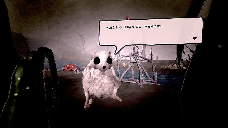 Scurrying along the beach, you lift your buzzing wings along the craggy low-poly rocks, following the river where you’re greeted by an absolutely adorable creature that contrasts against the dreary atmosphere. Peering into their inner thoughts of unconfidence and doubt, you become fast friends as you’re determined to assist them in their only dream. The dream keeping them going on this plane. You’re a praying mantis with a mission after all. Your new rodent acquaintance selflessly offers up themselves to assist you without question. It’s what friends do, right? The sacrifice must be worth it. Perhaps it will help them achieve their dream? The sky shudders and quakes as your new friend trembles at the question of their decision. Was it worth it?
