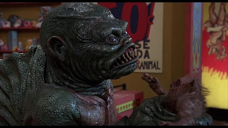 Satan’s Den, a traveling sideshow, rolls into town, led by charming drunk Uncle Ned (Royal Dano), and unbeknownst to its employees a gaggle of ghoulies has hitched a ride. Corporate bozo Hardin (J. Downing) wants to shutter the show because they haven’t been turning a profit, but when the ghoulies step out in the horror house attraction and start to slay the guests a strange thing happens: they become the hit of the show. Soon guests are lining up, eager to trade their dollars for a chance to check out these mini murderers. But their carnival carnage can only continue for so long before the show’s employees realize they need to figure out how to banish the little beasts back to hell before they devour every paying customer.