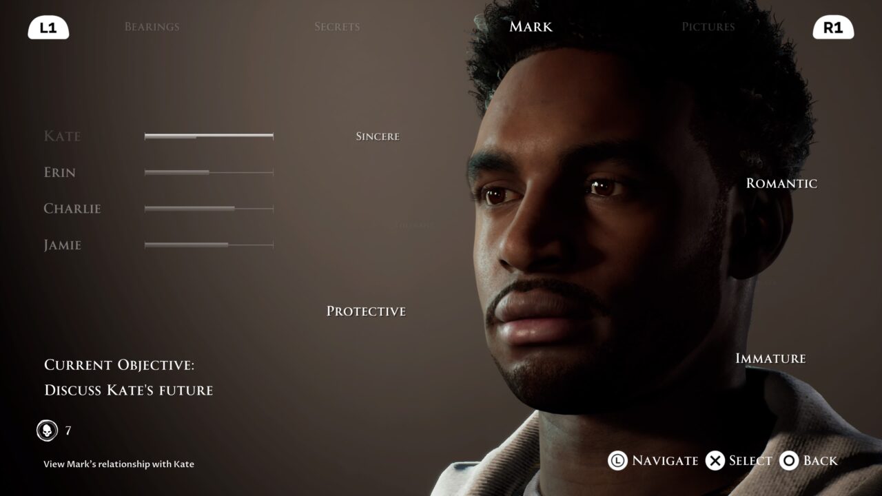 The system of finding death totems returns again this time in the form of medical pictures. It’s still interesting and vague enough that they give you hints without revealing entire sequences. What is vastly different here is the way that the characters interact with the environment. While in past games, it mostly points A to B with little reason to explore outside, finding extra notes. Here you need to explore and use the tools at everyone’s disposal to solve puzzles and find additional clues that help further unwind the mystery. For example, Mark being the photographer and camera guy, has an equivalent as a selfie stick that he can use to reach items on a higher shelf. Or Kate, who has a pencil that can be used to see notes left on paper pads. It only adds a little to the gameplay and makes certain moments feel a little long in the tooth, but it’s still a nice edition that shows they are trying to mix up the formula. After four Dark Picture games and two other titles, it needs to be shaken up a bit.