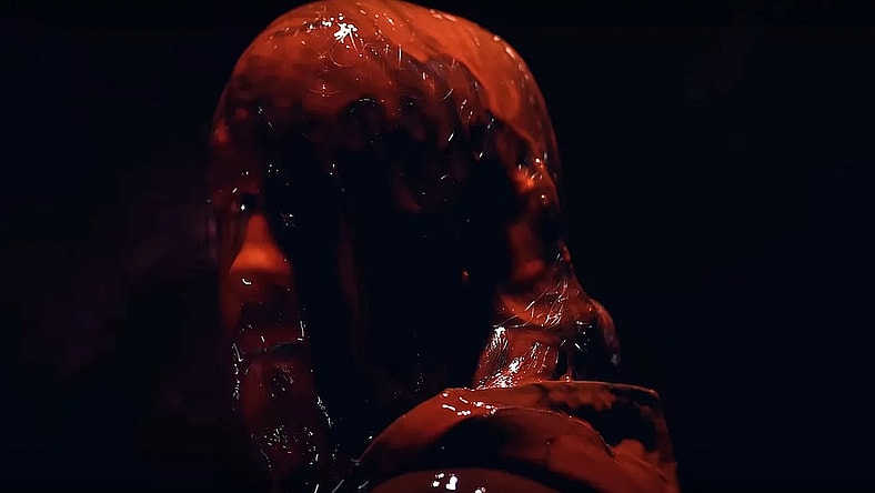 Fischbach gained popularity through reaction videos, and Iron Lung might as well be the ultimate version of that. Dealing with the trauma of the events that led Simon to the mission, he’s already on edge. Once beneath the surface, though, the character acts as an avatar for the audience. Repeated F-bombs drop as Simon crawls through tight shafts, dips into pools of blood, and receives terrifying images of his surroundings. I found myself uttering “fuck that” with Simon often as he closes his eyes and pushes through, hellbent on freedom. Fischbach may not be the most gifted actor, but he does just enough to sell the terror.