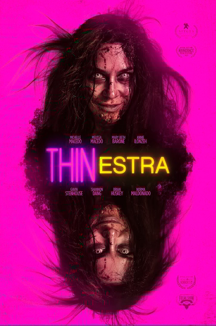 Penned by Avra Fox-Lerner, Thinestra follows “Penny (Michelle Macedo), a young woman tormented by body dysmorphia and relentless societal pressures around perfection. When Penny impulsively takes a mysterious, Ozempic-esque weight-loss drug, she experiences a horrifyingly literal transformation. The fat she sheds returns as her ravenous doppelgänger, Penelope (Melissa Macedo), and chaos ensues.”