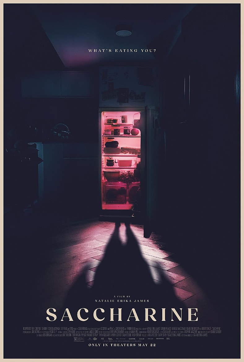 Saccharine opens in theaters on May 22, 2026, from Independent Film Company and Shudder.