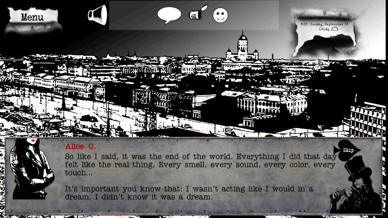 The Bottom of the Well stars our narrator and protagonist Alice and her correspondent Mad H as she recounts her mystifying dream of a post-apocalyptic future. The game makes no hesitance to allude to the Alice in Wonderland analogy but instead of a fantastical kingdom, it’s a grueling attempt to survive the aftermath of the annihilation of our world. Transported there through a dream created by a strange radio tune Alice and the player must survive worldwide annihilation and get to the meaning of this condemnation if there is one.